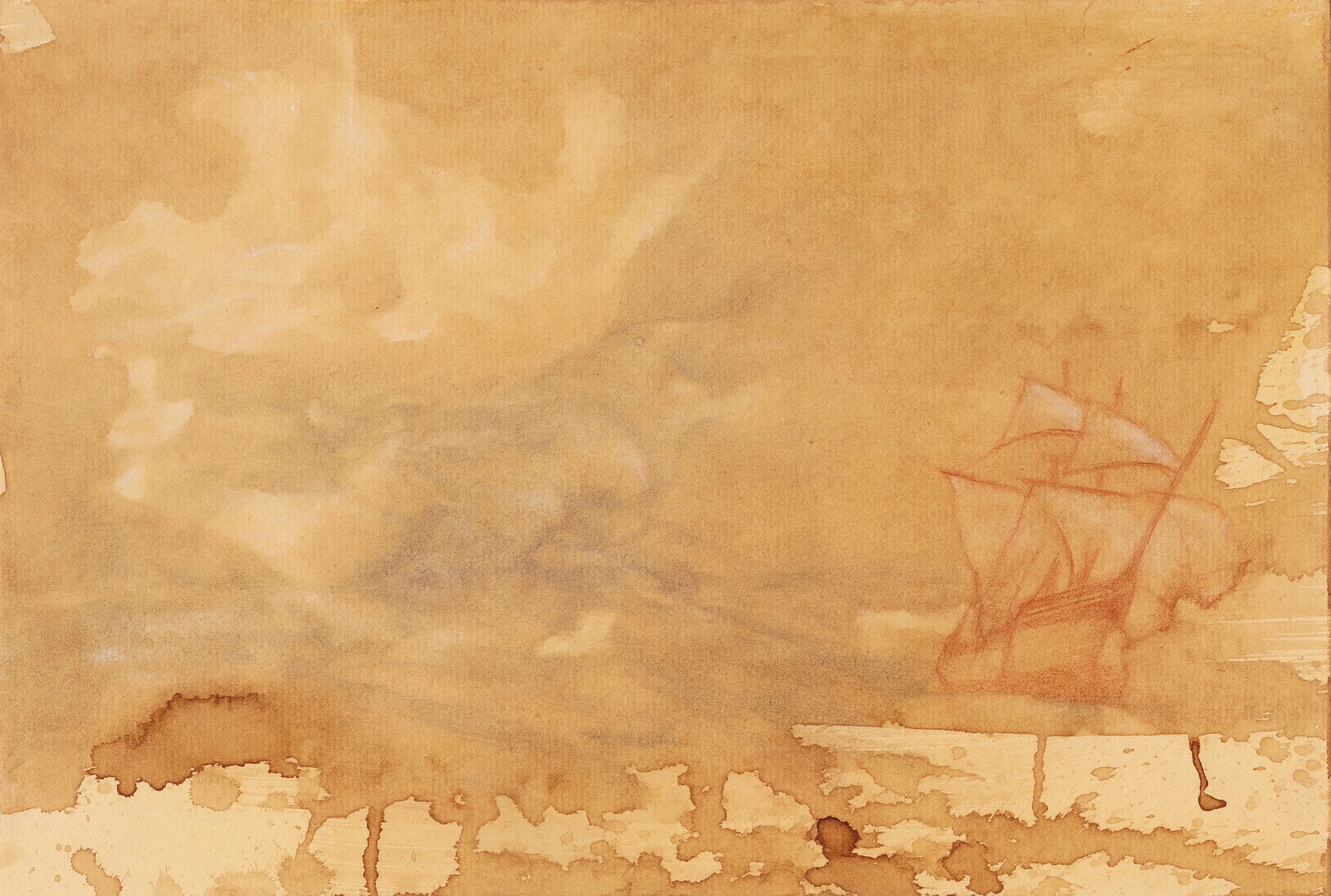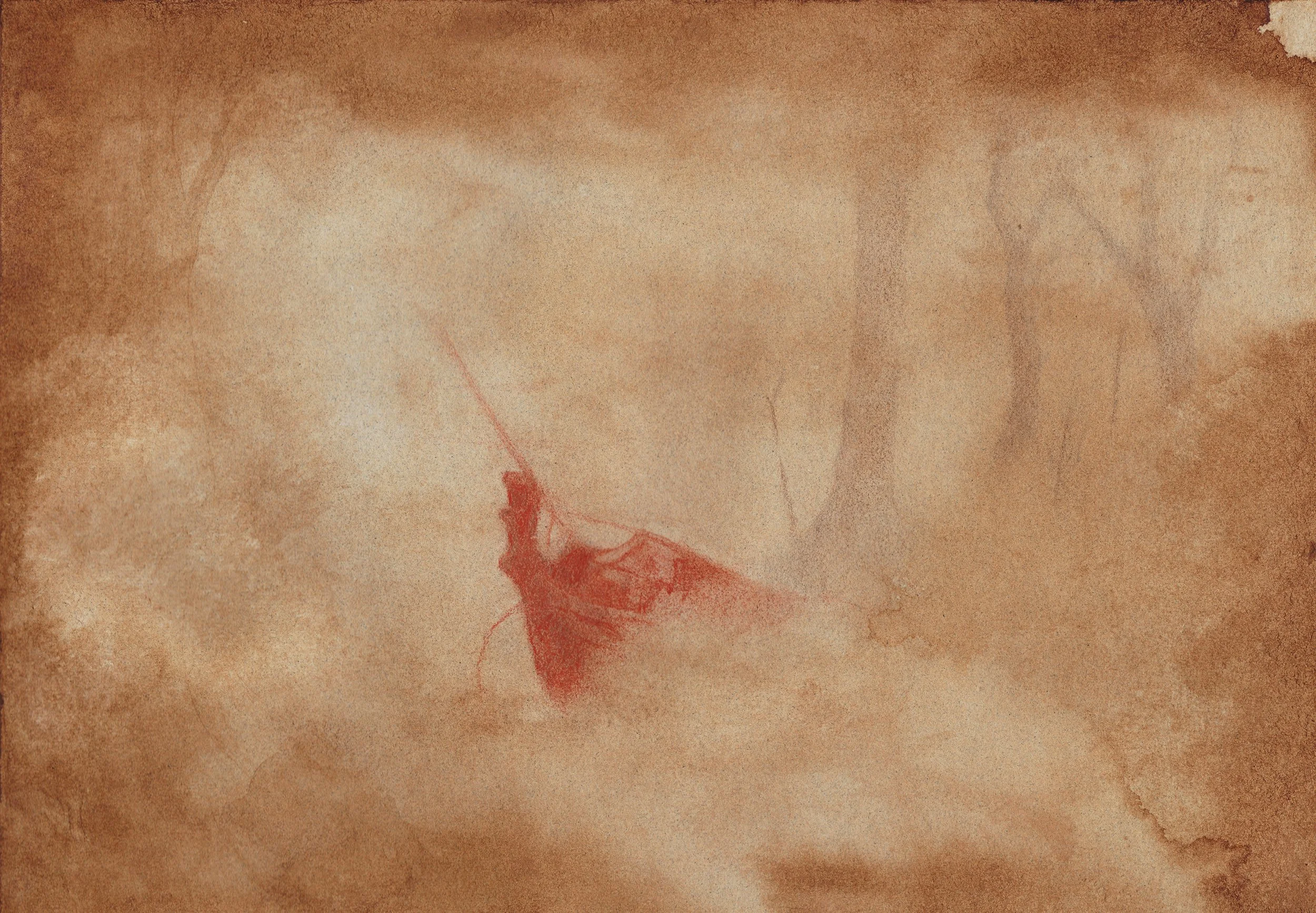Lost At Sea, Red chalk heightened with white on hand-laid stained paper, 7.5 x 11 in.